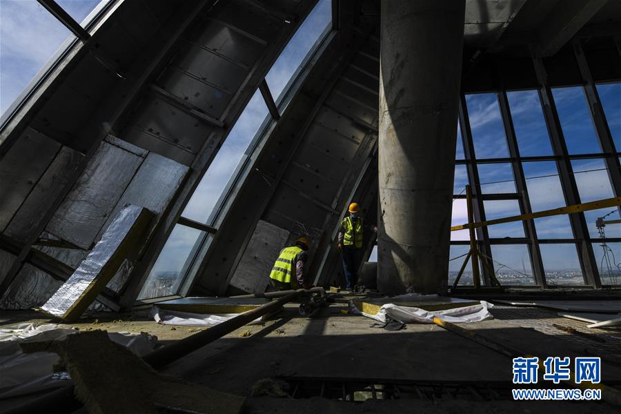 6月16日,工人在新疆烏魯木齊奧林匹克體育中心運(yùn)動(dòng)員賓館內(nèi)施工。新華社記者 王菲 攝