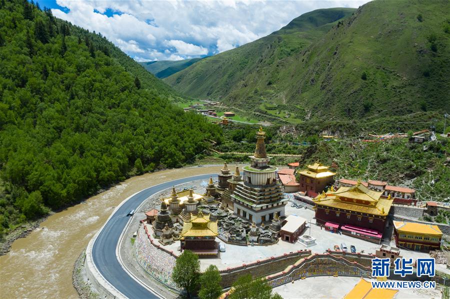 四川省阿壩藏族羌族自治州壤塘縣棒托石刻公園(6月13日攝,無人機(jī)照片)。新華社記者 沈伯韓 攝
