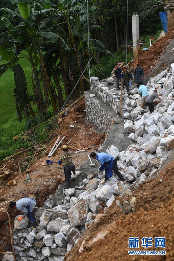 6月17日,工人在百坭村建設(shè)擋土墻。新華社記者 陸波岸 攝