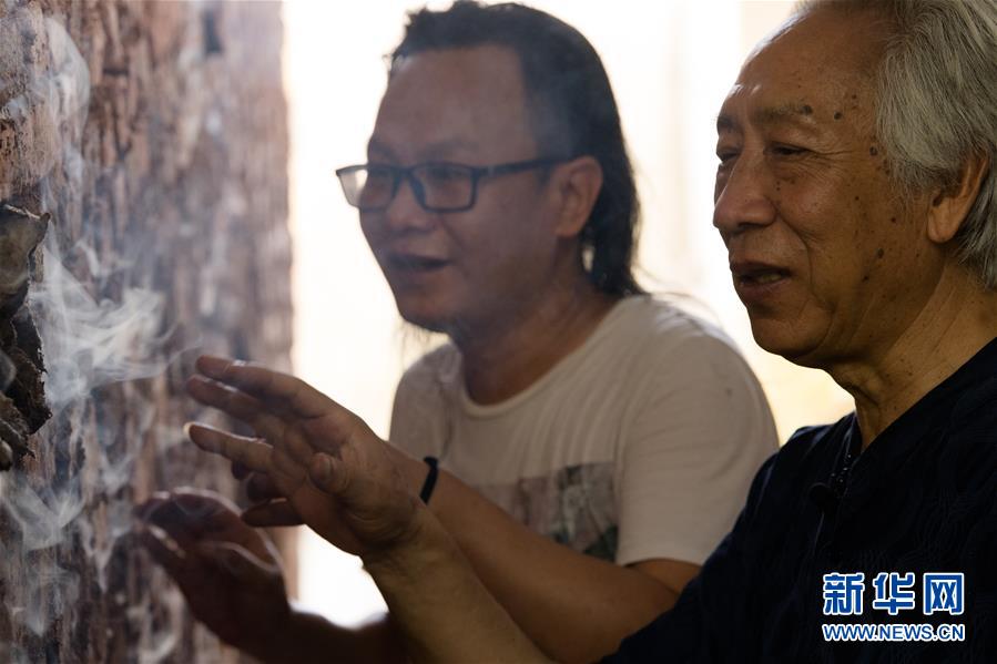 6月17日,在位于浙江慈溪的工作室,聞長慶和兒子聞果立檢查新窯的窯壁。新華社記者 翁忻旸 攝