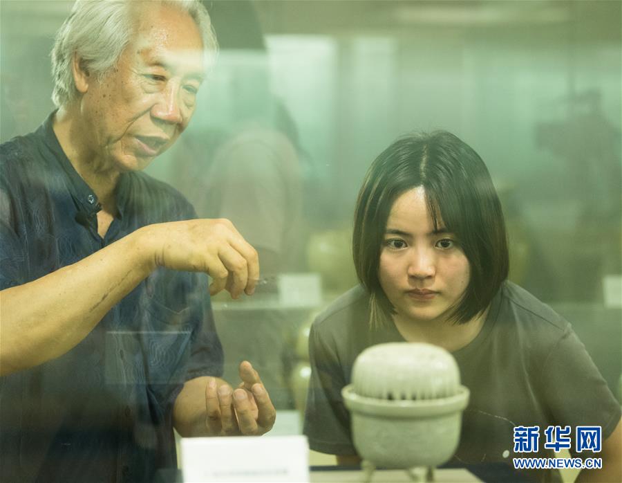 6月17日,在位于浙江慈溪的工作室,聞長慶查看自己收藏的古越窯標(biāo)本。新華社記者 翁忻旸 攝