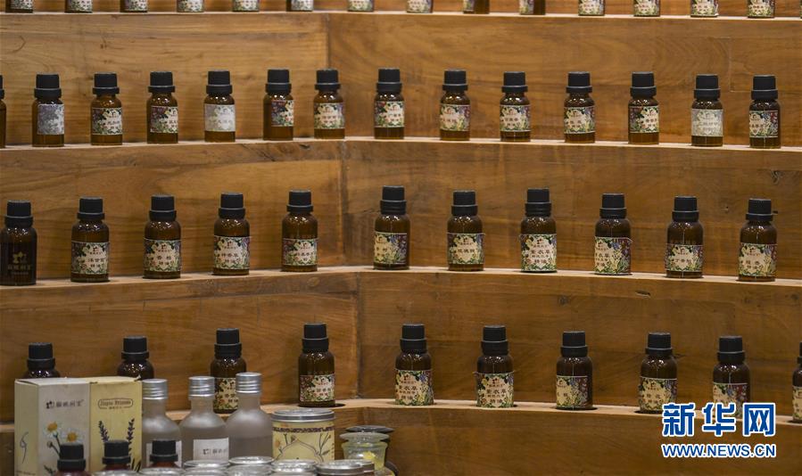 這是霍城縣解憂(yōu)公主薰衣草園內(nèi)展示的各類(lèi)薰衣草香料(6月16日攝)。新華社記者 趙戈 攝