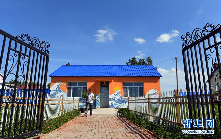 6月18日,一名吉林藝術(shù)學(xué)院學(xué)生在清水村進行涂鴉創(chuàng)作。新華社記者林宏攝