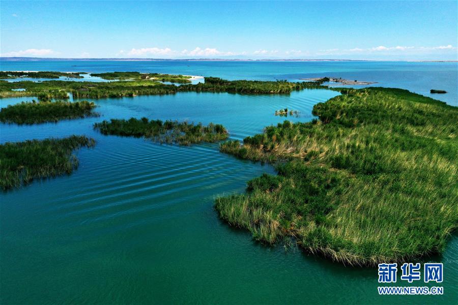 6月19日拍攝的新疆烏倫古湖國(guó)家濕地公園(無(wú)人機(jī)照片)。烏倫古湖國(guó)家濕地公園位于新疆阿勒泰地區(qū)福海縣城以西,由烏倫古湖和吉力湖兩部分組成。烏倫古湖濕地公園是遷徙候鳥(niǎo)飛越天山和阿爾泰山的“能量補(bǔ)充站”,良好的濕地生態(tài)吸引著大量遷徙鳥(niǎo)類在此集結(jié)成群,繁殖棲息,成為一道靚麗的風(fēng)景線。新華社記者 沙達(dá)提 攝