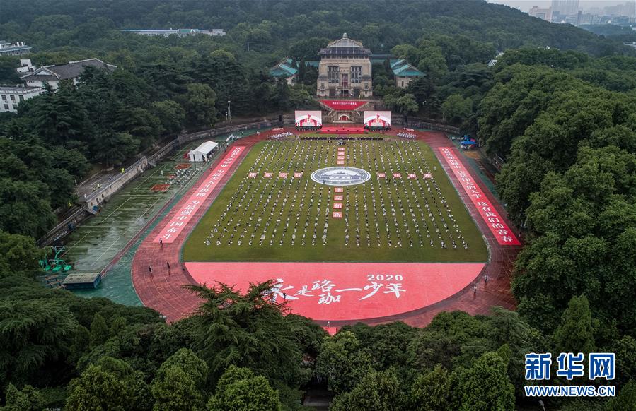 6月20日拍攝的武漢大學(xué)2020年畢業(yè)典禮現(xiàn)場(無人機(jī)照片)。