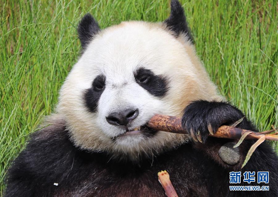 在位于四川省阿壩藏族羌族自治州的九寨溝大熊貓園拍攝的大熊貓(6月19日攝)。