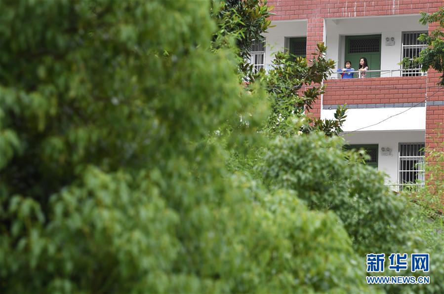 6月19日,在金寨縣三合實驗學(xué)校,蔡齊艷(左)和同學(xué)交流學(xué)習(xí)。新華社記者張端攝