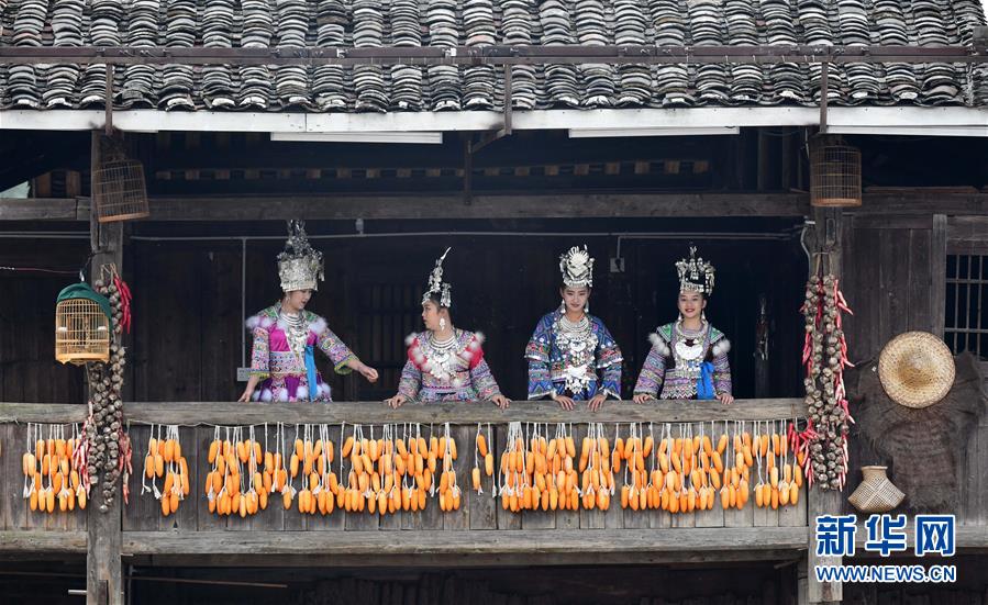 在廣西融水雙龍溝森林旅游度假區(qū)夢(mèng)嗚苗寨,游客身著苗族服飾拍照(2019年11月24日攝)。近年來(lái),融水打造原生態(tài)苗族文化體驗(yàn)園——夢(mèng)嗚苗寨,讓搬遷進(jìn)城的貧困戶住進(jìn)復(fù)原建設(shè)的老房子。景區(qū)提供綠化保潔、游樂(lè)設(shè)施管理、民族歌舞表演等工作崗位,多渠道增加貧困戶收入。新華社記者黃孝邦攝