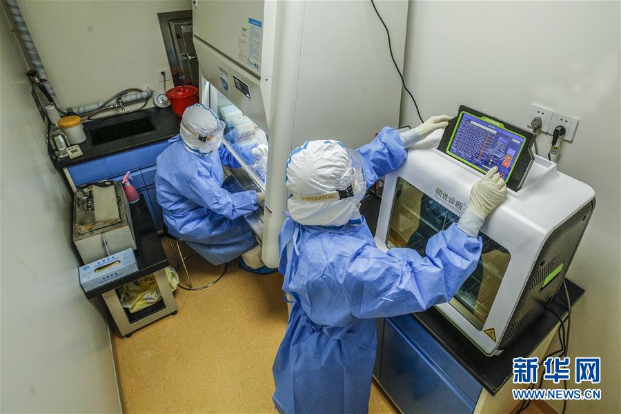 6月23日,檢驗人員在實驗室擴增區(qū)內(nèi)工作。6月15日,北京市普仁醫(yī)院PCR實驗室正式啟用,并立即投入到新冠肺炎病毒核酸檢測工作之中,為新冠肺炎疫情防控增添利器。普仁醫(yī)院PCR實驗室啟用以來,除了來自本院發(fā)熱門診、門急診、病房和核酸檢測采樣點的樣本之外,還承接了社區(qū)以及東城區(qū)集中核酸檢測點采集的部分樣本。新華社記者張玉薇攝
