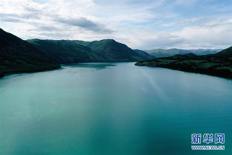 這是6月24日拍攝的新疆喀納斯景區(qū)風(fēng)光(無(wú)人機(jī)照片)。夏日的新疆喀納斯景區(qū),森林、草原、湖泊景致秀美,引人入勝。新華社記者 沙達(dá)提 攝