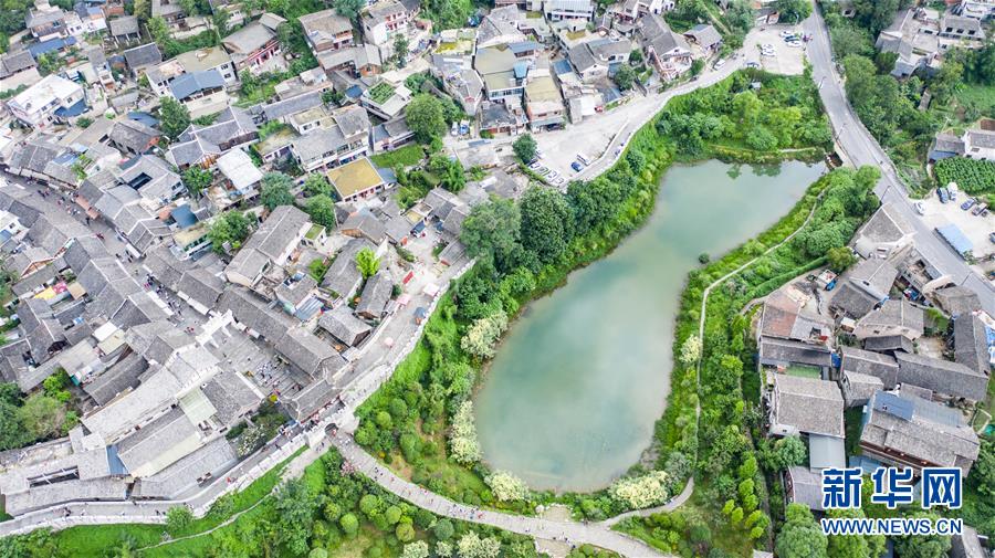 貴陽市青巖古鎮(zhèn)景區(qū)風光(無人機照片)。仲夏時節(jié),貴州省貴陽市花溪區(qū)青巖古鎮(zhèn)景區(qū)綠意盎然,優(yōu)美的風景吸引眾多游客前來觀光游玩。新華社記者陶亮攝