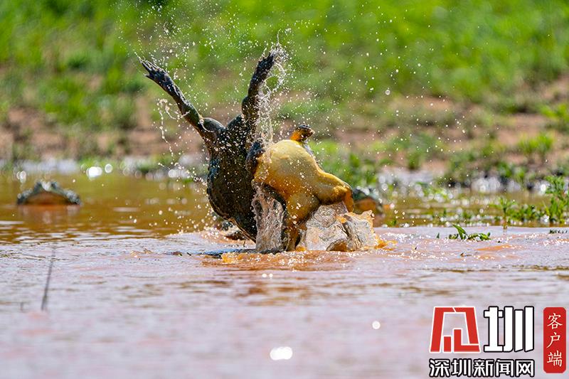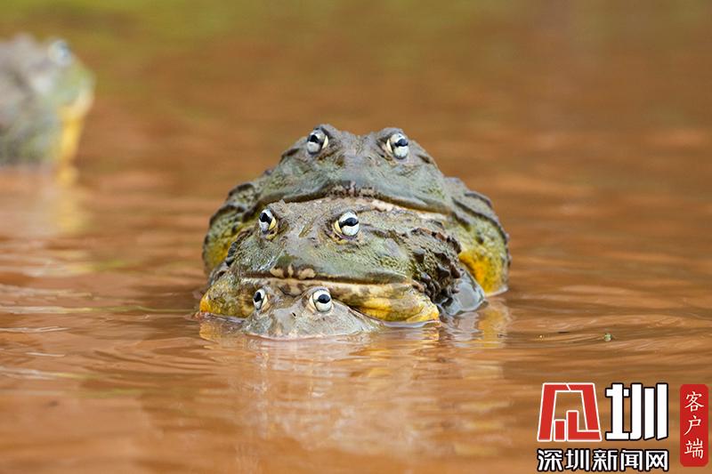 2020年6月30日報道(具體拍攝時間不詳),南非波羅克瓦克,兩只雄性非洲牛蛙為了爭奪雌性牛蛙,在池塘中打架,這樣的情形十分罕見。畫面中,戰(zhàn)況十分激烈,一只非洲牛蛙在另外一只試圖逃到池塘邊緣時撕咬對手,甚至將另外一只拋向空中。這些精彩的照片是由南非開普敦攝影師Temujin Johnson拍攝的。