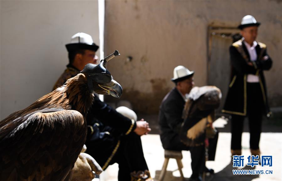 6月29日,庫(kù)爾馬西·胡特曼的徒弟在庫(kù)爾馬西家中交流馴鷹技藝。新華社記者宋彥樺攝