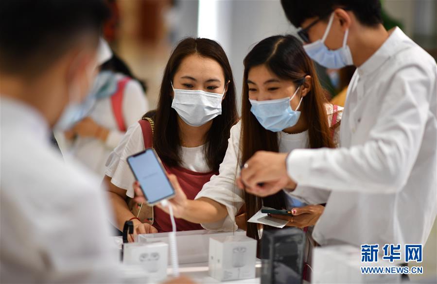 7月1日,顧客在海口日月廣場免稅店選購手機等電子消費產(chǎn)品。當日,海南開始實施調(diào)整后的離島免稅購物政策。海南離島旅客每年每人免稅購物額度提高至10萬元,電子消費產(chǎn)品等7類新增商品開售。新華社記者郭程攝
