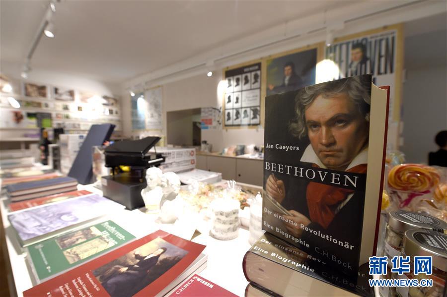 7月2日,奧地利維也納的貝多芬博物館紀念品商店展示關于貝多芬的書籍。因疫情關閉的奧地利維也納貝多芬博物館7月1日起再次開門迎客。該博物館是貝多芬在維也納的故居之一,貝多芬曾在此長期居住并創(chuàng)作了部分經(jīng)典的音樂作品。2020年是貝多芬誕辰250周年。新華社記者 郭晨 攝