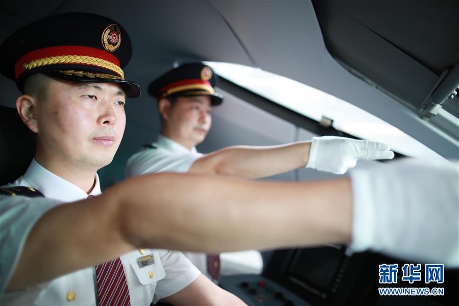 7月3日,擔任首發(fā)列車值乘工作的貴陽機務段司機在貴陽亮相。 新華社記者 劉續(xù) 攝