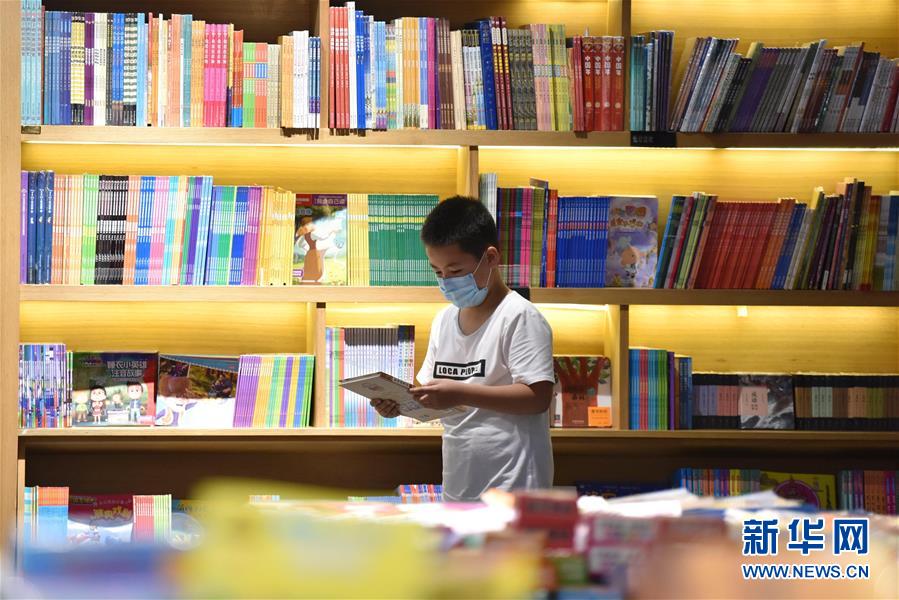 7月5日,小朋友在河北省定州市新華書店閱讀圖書。近日,河北省定州市新華書店在做好疫情防控的前提下,開展“樂享圖書嘉年華”系列活動,通過舉辦圖書聯(lián)展、親子閱讀、少兒讀物推介等活動,吸引少年兒童走進(jìn)圖書館,感受書香陪伴的夏天。新華社記者朱旭東攝