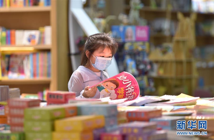 7月5日,一名小朋友在河北省定州市新華書店挑選圖書。近日,河北省定州市新華書店在做好疫情防控的前提下,開展“樂享圖書嘉年華”系列活動,通過舉辦圖書聯(lián)展、親子閱讀、少兒讀物推介等活動,吸引少年兒童走進(jìn)圖書館,感受書香陪伴的夏天。新華社記者朱旭東攝
