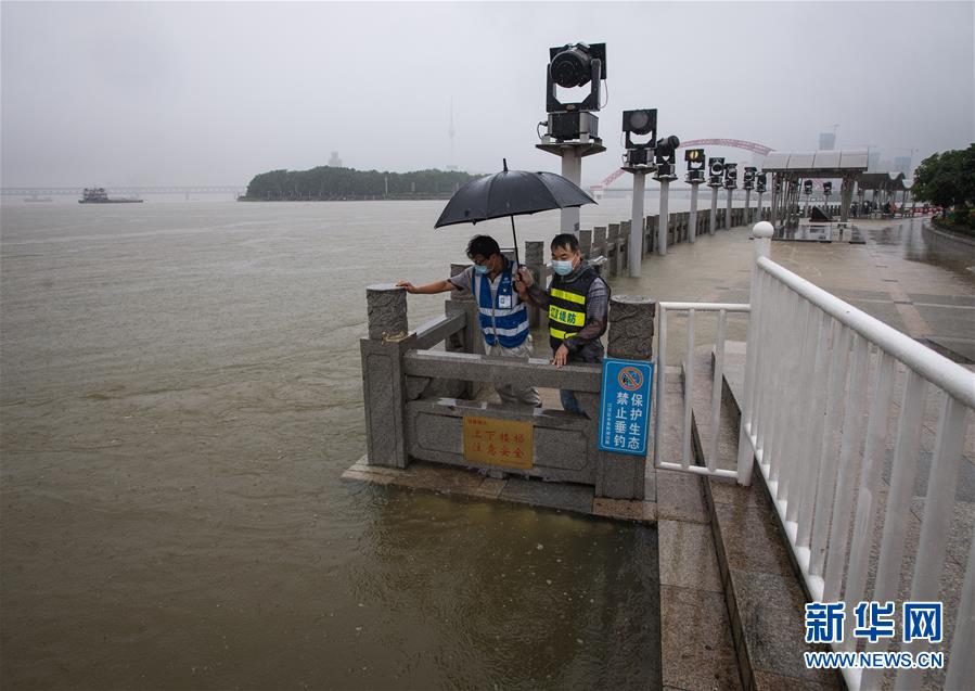 7月6日,工作人員在武漢龍王廟觀察水情。記者6日從武漢市防汛抗旱指揮部辦公室獲悉,5日以來,武漢遭暴雨襲擊,全市多處路段漬水。至6日4時,長江漢口站超設(shè)防水位1.79米,漢江新溝站超警戒水位0.01米。鑒于當(dāng)前水雨汛情和漬澇情況,武漢市從6日5時起,將排澇應(yīng)急響應(yīng)級別提升至Ⅱ級;從6時30分起,將防汛應(yīng)急響應(yīng)級別提升至Ⅱ級。新華社記者肖藝九攝