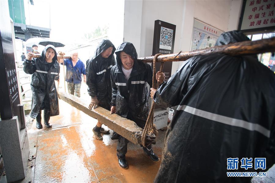 7月6日,工作人員在武漢龍王廟封堵閘口。記者6日從武漢市防汛抗旱指揮部辦公室獲悉,5日以來,武漢遭暴雨襲擊,全市多處路段漬水。至6日4時,長江漢口站超設防水位1.79米,漢江新溝站超警戒水位0.01米。鑒于當前水雨汛情和漬澇情況,武漢市從6日5時起,將排澇應急響應級別提升至Ⅱ級;從6時30分起,將防汛應急響應級別提升至Ⅱ級。新華社記者肖藝九攝