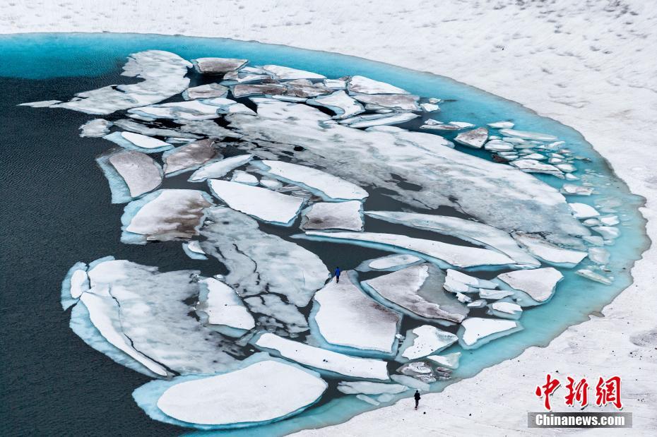 當?shù)貢r間2020年7月7日,俄羅斯堪察加半島,Gorely火山附近的Sredinnoye火山湖。這個湖斷斷續(xù)續(xù)的,是6月底到8月初融雪形成的。圖片來源:視覺中國