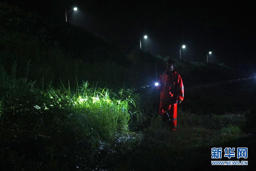 7月9日,邵忠如冒雨夜巡圩堤。新華社記者萬(wàn)象攝