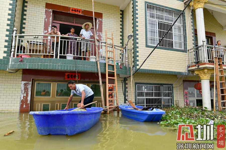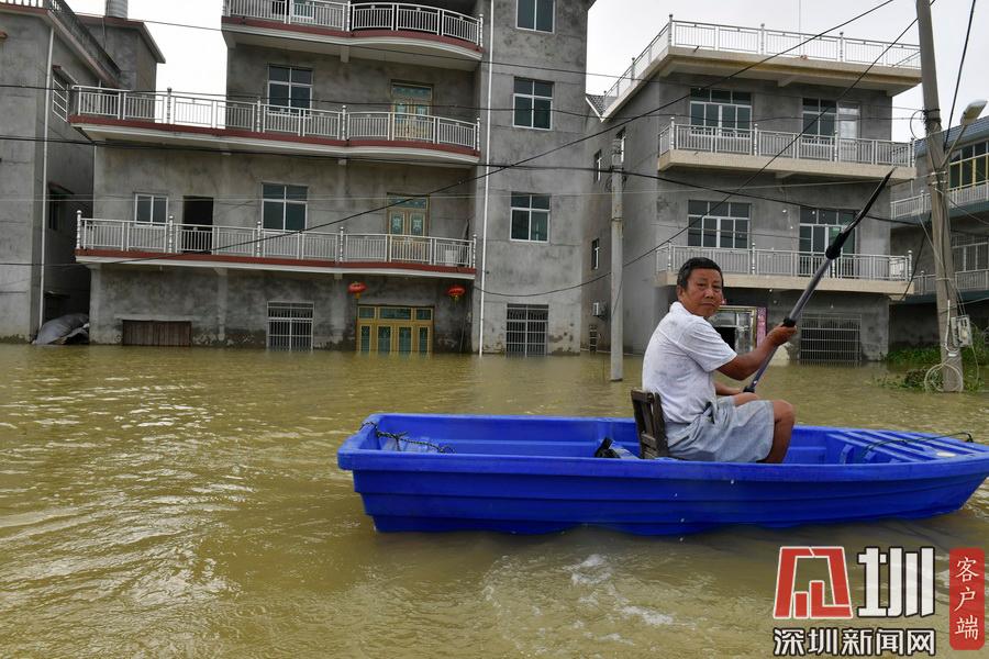 2020年7月15日,江西省鄱陽縣油墩街鎮(zhèn)同興村,村莊受到洪水圍困,大部分村民已經(jīng)被轉移出去,仍有少數(shù)村民選擇留守家中積極自救繼續(xù)生活。7月8日晚,鄱陽縣油墩街鎮(zhèn)西江因特大暴雨出現(xiàn)漫堤決口,5個行政村被洪水圍困,數(shù)萬名群眾被及時疏散轉移。同興村村民張瑤康回憶起了當時的場景,“水一下子就涌進來,等緩過神來趕緊向二樓轉移一樓的物品。洪水來時只從一樓搶到了一些輕便易拿的東西,冰箱、洗衣機之類的大物件,至今仍浸泡在一樓水中?!?5日,記者跟隨張瑤康乘船回家,抵達后看到,一樓淹沒在水中,一個綁在二樓護欄的木梯成為進出“家門”的唯一通道?!懊刻靹澊ゴ謇镞\送水和食物,家里有煤氣罐和灶臺。因為80多歲的老母親行動不便,我們選擇留守家中?!薄半m然對岸就有安置點,但還是更愿待在自己家里,一來是不愿意給政府添麻煩,二來能每天看著自己的房子心里踏實?!蓖d村村民張長來夫婦帶著剛剛領到的大米、方便面、飲用水乘船回到家中。記者在現(xiàn)場看到,隨著各方救援力量和物資的匯聚,被洪水圍困的村民生活雖有不便,但生活仍在繼續(xù)?!胺孔硬坏?,家就在,我們要積極面對,早日重建家園?!睆埇幙蹈嬖V記者。
