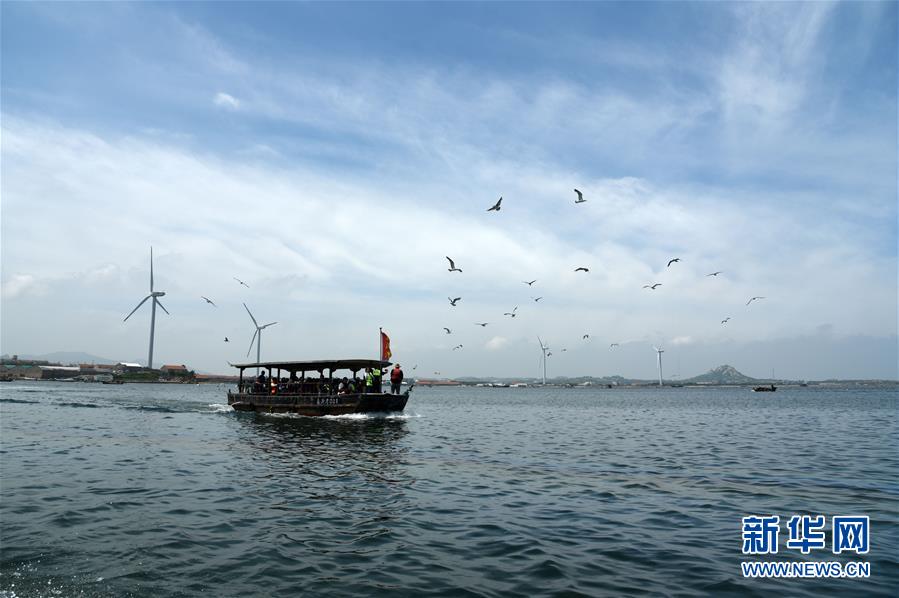 7月17日,游客乘坐觀光船參觀榮成桑溝灣泓泰國家級海洋牧場。近年來,山東省榮成市重點發(fā)展特色海洋旅游產(chǎn)業(yè),打造眾多國家級海洋牧場,保留修復(fù)傳統(tǒng)海草民居,吸引游客前來觀光體驗。如今特色海洋旅游已逐漸成為榮成經(jīng)濟發(fā)展新的增長點。新華社記者王凱攝