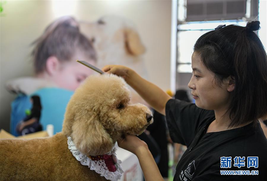 7月19日,在成都世紀(jì)城新國際會(huì)展中心,一家寵物美容學(xué)校的工作人員演示給寵物犬梳毛。當(dāng)日,第九屆成都國際寵博會(huì)進(jìn)入最后一天。此次展會(huì)展出面積30000平方米,匯聚國內(nèi)外品牌企業(yè)和產(chǎn)品,覆蓋中西部地區(qū)寵物行業(yè)食品、用品、醫(yī)療和服務(wù)等領(lǐng)域。新華社記者王曦?cái)z