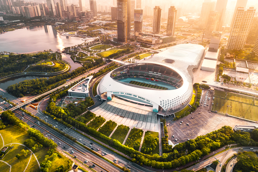 2018年5月10日,深圳灣體育中心日落。