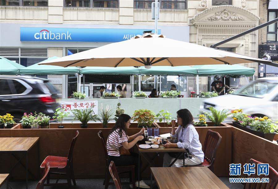 7月23日,在美國(guó)紐約,人們?cè)趹?hù)外就餐區(qū)用餐。美國(guó)約翰斯·霍普金斯大學(xué)23日發(fā)布的新冠疫情最新統(tǒng)計(jì)數(shù)據(jù)顯示,美國(guó)累計(jì)確診病例超過(guò)400萬(wàn)例。數(shù)據(jù)顯示,截至美國(guó)東部時(shí)間23日15時(shí)34分(北京時(shí)間24日3時(shí)34分),美國(guó)累計(jì)確診病例4007859例,累計(jì)死亡病例143846例。新華社記者王迎攝