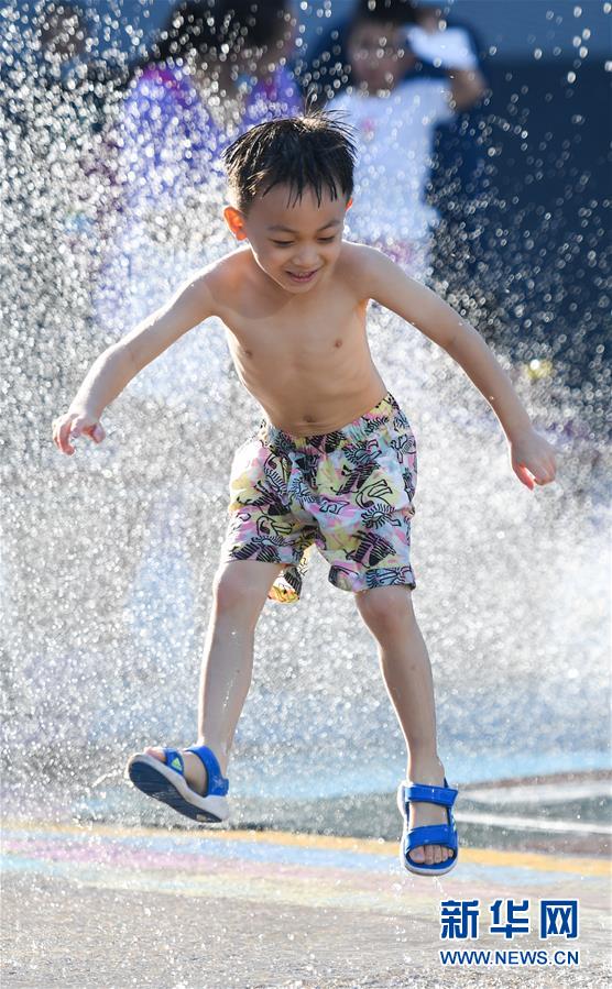 7月24日,一名小男孩在北京華熙LIVE·五棵松商業(yè)街區(qū)的一處噴泉戲水。北京市氣象局7月24日傍晚發(fā)布稱,24日截至16時(shí)30分,平原大部分地區(qū)出現(xiàn)37℃以上高溫天氣,局地氣溫超過(guò)40℃。北京市已于23日發(fā)布高溫藍(lán)色預(yù)警,預(yù)計(jì)25日全市大部分地區(qū)日最高氣溫仍將達(dá)35℃以上。新華社記者陳曄華攝