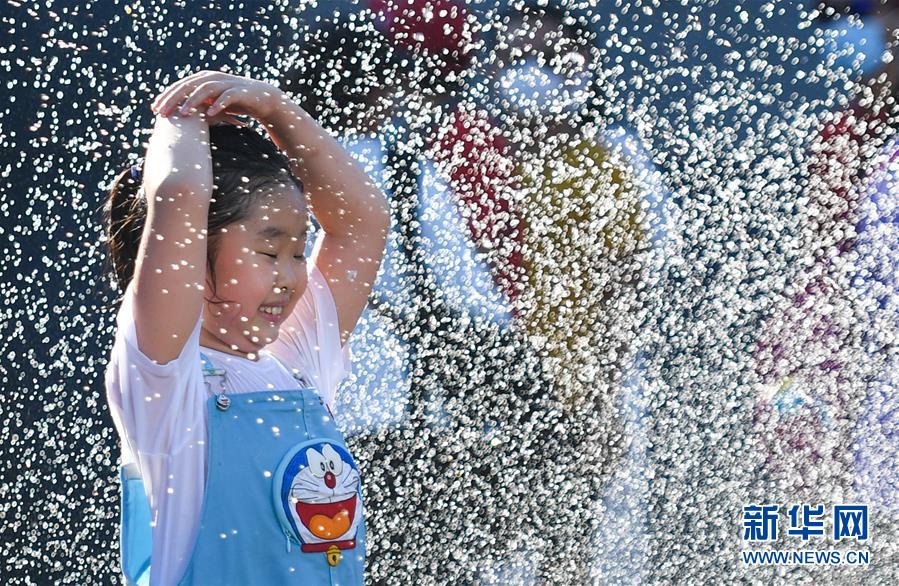 7月24日,一名小女孩在北京華熙LIVE·五棵松商業(yè)街區(qū)的一處噴泉戲水。北京市氣象局7月24日傍晚發(fā)布稱,24日截至16時30分,平原大部分地區(qū)出現(xiàn)37℃以上高溫天氣,局地氣溫超過40℃。北京市已于23日發(fā)布高溫藍色預(yù)警,預(yù)計25日全市大部分地區(qū)日最高氣溫仍將達35℃以上。新華社記者陳曄華攝