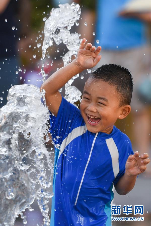 7月24日,一名小男孩在北京華熙LIVE·五棵松商業(yè)街區(qū)的一處噴泉戲水。北京市氣象局7月24日傍晚發(fā)布稱,24日截至16時30分,平原大部分地區(qū)出現(xiàn)37℃以上高溫天氣,局地氣溫超過40℃。北京市已于23日發(fā)布高溫藍色預(yù)警,預(yù)計25日全市大部分地區(qū)日最高氣溫仍將達35℃以上。新華社記者陳曄華攝