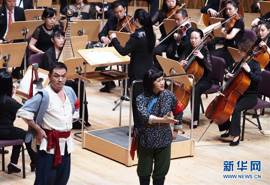 7月25日晚,演員在音樂(lè)會(huì)版歌劇《洪湖赤衛(wèi)隊(duì)》中表演。當(dāng)日,湖北省歌劇舞劇院攜湖北交響樂(lè)團(tuán)亮相上海交響樂(lè)團(tuán)音樂(lè)廳,為2020上海夏季音樂(lè)節(jié)獻(xiàn)上一臺(tái)音樂(lè)會(huì)版歌劇《洪湖赤衛(wèi)隊(duì)》。新華社記者 任瓏 攝