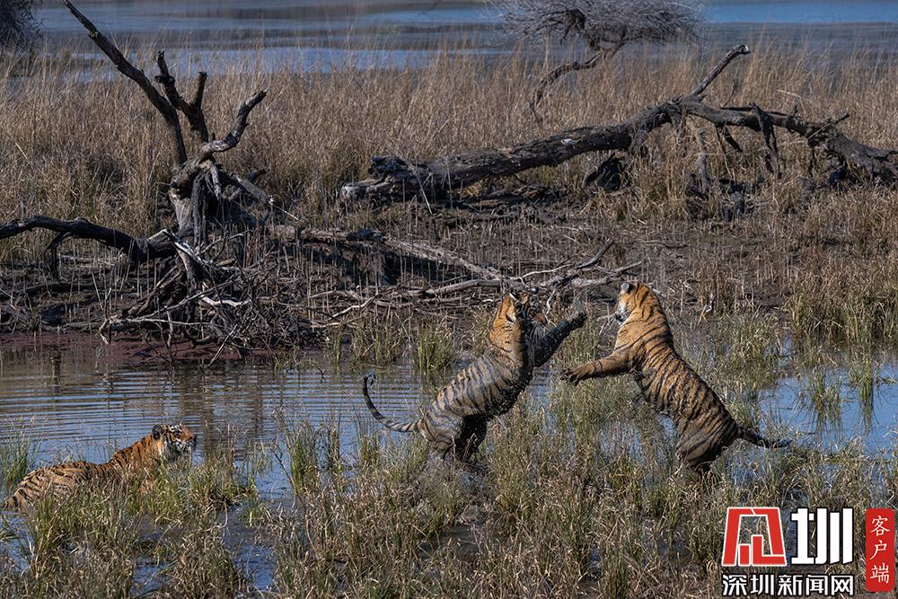 2020年7月27日,兩只老虎幼崽激烈的水上爭奪戰(zhàn)。