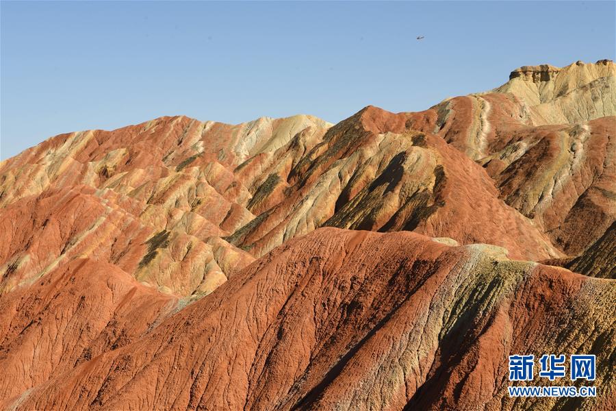 盛夏時(shí)節(jié),地處甘肅省張掖市的張掖世界地質(zhì)公園迎來最美季節(jié)。張掖世界地質(zhì)公園最顯著的特征是有由色彩斑斕的褶皺泥巖和砂巖組成的彩色丘陵,同時(shí)還擁有自然侵蝕在山體上形成的“窗欞狀”“宮殿式”丹霞地貌和古代洋殼殘余九個(gè)泉蛇綠巖套。