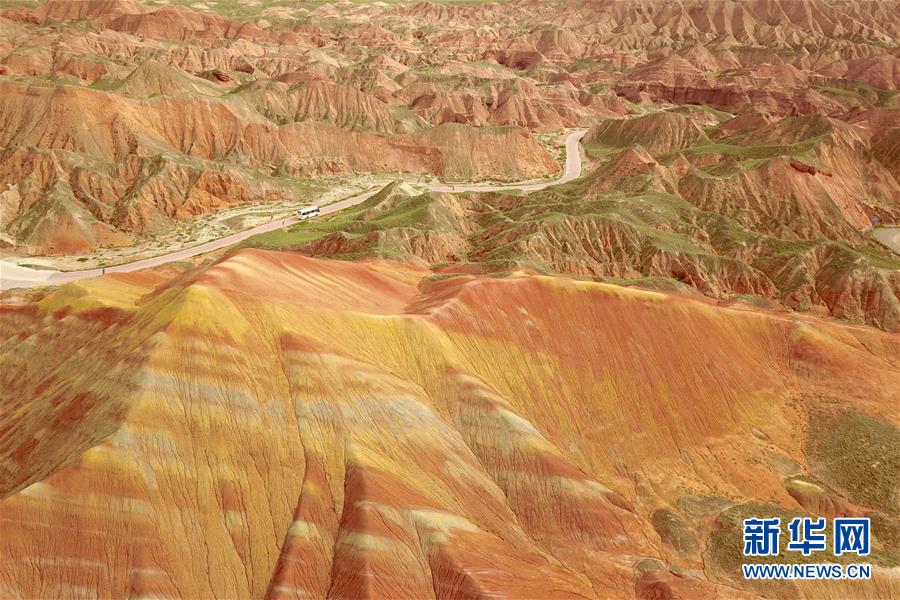 這是7月27日拍攝的張掖世界地質(zhì)公園七彩丹霞景區(qū)景觀(無人機(jī)照片)。新華社記者 范培珅 攝