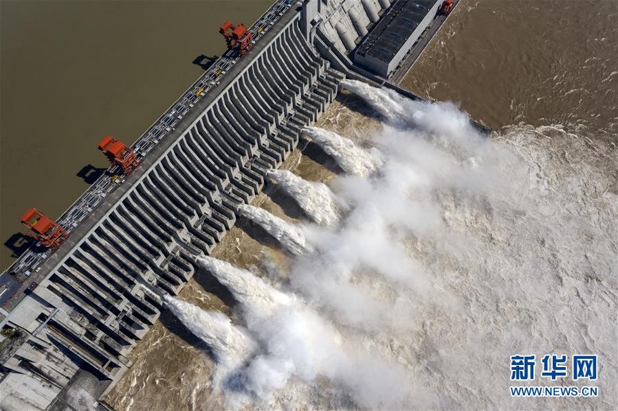 8月2日,江水通過三峽大壩下泄(無人機(jī)照片)。據(jù)水利部長江水利委員會消息,7月以來,長江流域共出現(xiàn)6次強(qiáng)降雨過程,長江上游先后發(fā)生3次編號洪水。為減輕中下游防洪壓力,包括三峽、葛洲壩在內(nèi)的長江中上游水庫群共攔洪300多億立方米。新華社記者杜華舉攝