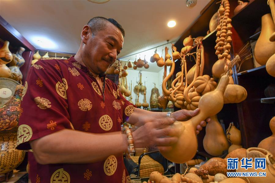 8月5日,侯景偉挑選適合創(chuàng)作的葫蘆。今年55歲的吉林四平人侯景偉自幼與家人學(xué)習(xí)雕刻、烙畫藝術(shù)。經(jīng)過多年潛心研究,他將浮雕和烙畫工藝相結(jié)合,通過拋光、起稿、雕刻、烙燙、套色等十余道工藝,制作展現(xiàn)傳統(tǒng)文化、民俗故事的葫蘆工藝品。2020年,侯景偉被評為四平市非物質(zhì)文化遺產(chǎn)項目侯氏葫蘆雕刻烙畫代表性傳承人。他說:“希望有更多人加入到非遺傳承隊伍中,讓小葫蘆‘講’出更多民俗故事。”新華社記者張楠攝