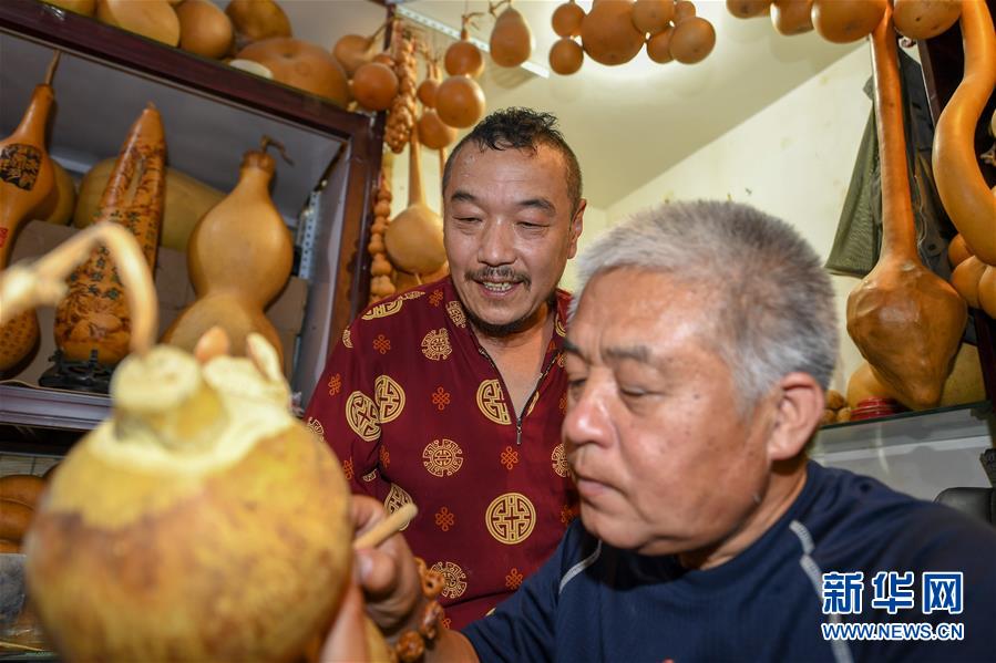 8月5日,侯景偉(左)向徒弟金志勇傳授技藝。今年55歲的吉林四平人侯景偉自幼與家人學(xué)習(xí)雕刻、烙畫藝術(shù)。經(jīng)過多年潛心研究,他將浮雕和烙畫工藝相結(jié)合,通過拋光、起稿、雕刻、烙燙、套色等十余道工藝,制作展現(xiàn)傳統(tǒng)文化、民俗故事的葫蘆工藝品。2020年,侯景偉被評為四平市非物質(zhì)文化遺產(chǎn)項目侯氏葫蘆雕刻烙畫代表性傳承人。他說:“希望有更多人加入到非遺傳承隊伍中,讓小葫蘆‘講’出更多民俗故事?!毙氯A社記者張楠攝
