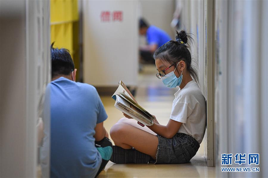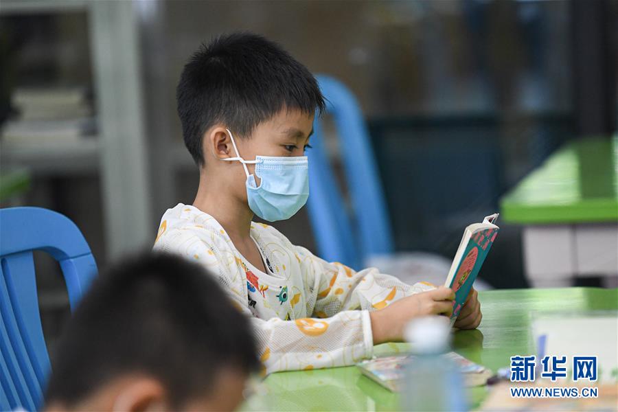 8月8日,小朋友在位于??诘暮D鲜D書館閱讀書籍。暑假期間,許多小朋友來到海南省圖書館閱讀書籍,在書香中度過快樂暑假。新華社記者 蒲曉旭 攝
