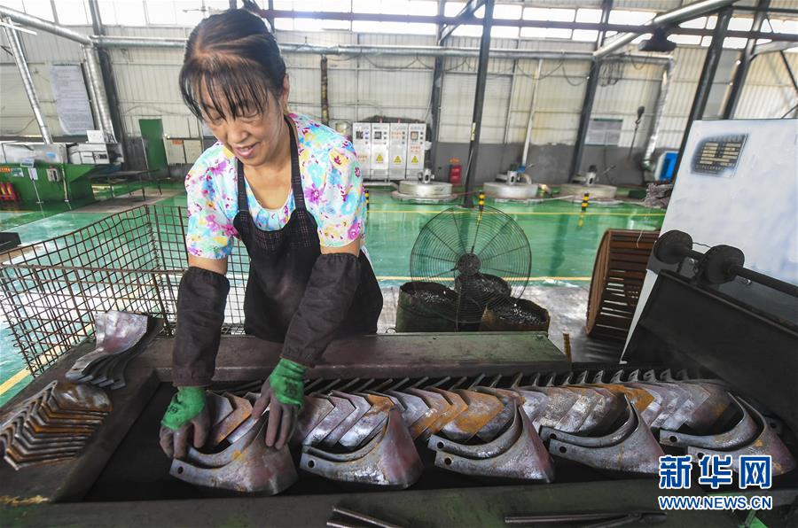 8月9日,河北大城縣南趙扶鎮(zhèn)一家旋耕機(jī)刀片生產(chǎn)企業(yè)員工在生產(chǎn)線上作業(yè)。河北省大城縣南趙扶鎮(zhèn)是該縣農(nóng)機(jī)配件行業(yè)傳統(tǒng)生產(chǎn)基地。疫情以來,南趙扶鎮(zhèn)引導(dǎo)企業(yè)做好風(fēng)險(xiǎn)防范,在農(nóng)機(jī)配件行業(yè)與世界各地客商及品牌開展方式多樣的合作,出口訂單不降反升。截至目前,該縣農(nóng)機(jī)配件行業(yè)出口總銷量達(dá)8000余萬元,較去年同期增長(zhǎng)30%。新華社記者李曉果攝。