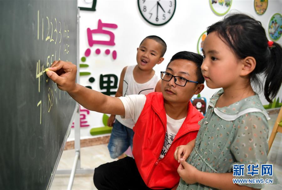陜西安康市嵐皋縣城關(guān)鎮(zhèn)城北易地扶貧搬遷安置小區(qū)“四點半課堂”的老師在輔導(dǎo)孩子們學(xué)習(xí)數(shù)字(7月29日攝)。地處秦巴山區(qū)的嵐皋縣山多溝深,群眾居住分散,長期以來易地搬遷成為這里脫貧攻堅的重點。為避免易地搬遷群眾就業(yè)不充分、辦事不方便、管理不到位等問題,嵐皋縣依托市場完善社區(qū)生活、醫(yī)療、教育、娛樂等服務(wù)設(shè)施,并開展技能培訓(xùn)、開辦社區(qū)工廠,讓搬遷居民“穩(wěn)得住”“能致富”。新華社記者劉瀟攝。