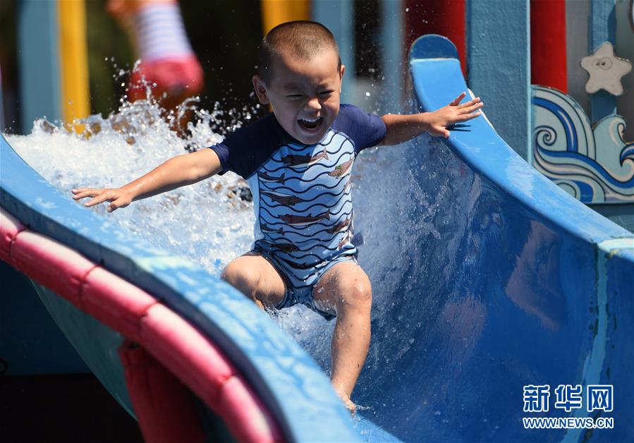 8月9日,一名小朋友在南宮五洲植物樂園戶外戲水區(qū)游玩。近期,在做好新冠肺炎疫情防控的前提下,位于北京市豐臺區(qū)的南宮五洲植物樂園戶外戲水區(qū)對外開放。市民在戲水的同時還可以在沙灘上畫沙畫、在新游樂項(xiàng)目“叢林網(wǎng)繩”里穿梭跳躍,豐富暑期生活。新華社記者任超攝。