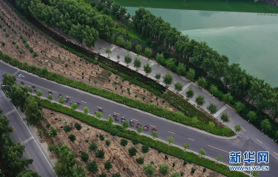 自行車愛(ài)好者在唐山市豐南區(qū)唐津運(yùn)河景觀大道騎行(7月31日攝,無(wú)人機(jī)照片)。近年來(lái),河北省唐山市豐南區(qū)全力推動(dòng)“全域治水、清水潤(rùn)城”工程,形成了以唐津運(yùn)河、人民公園生態(tài)廊道等以健身、休閑、旅游功能于一體的人水相親、城水相依的景觀環(huán)境,為綠色發(fā)展注入活力。新華社記者楊世堯攝。