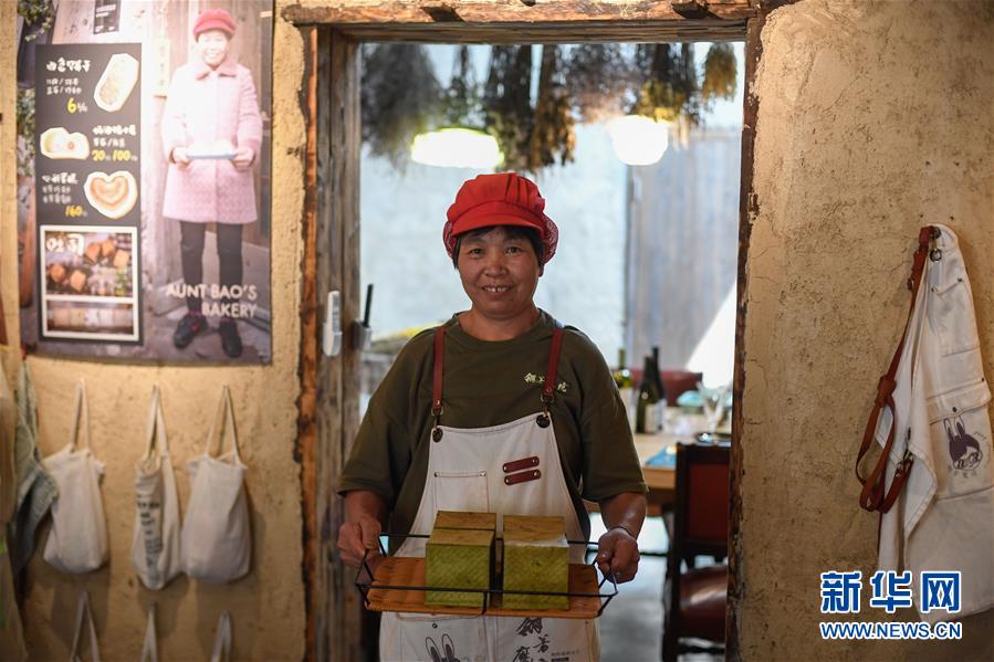在浙江省麗水市松陽(yáng)縣四都鄉(xiāng)平田村一家面包坊,村民鮑阿姨展示剛出爐的吐司面包(7月17日攝)。新華社記者黃宗治攝。