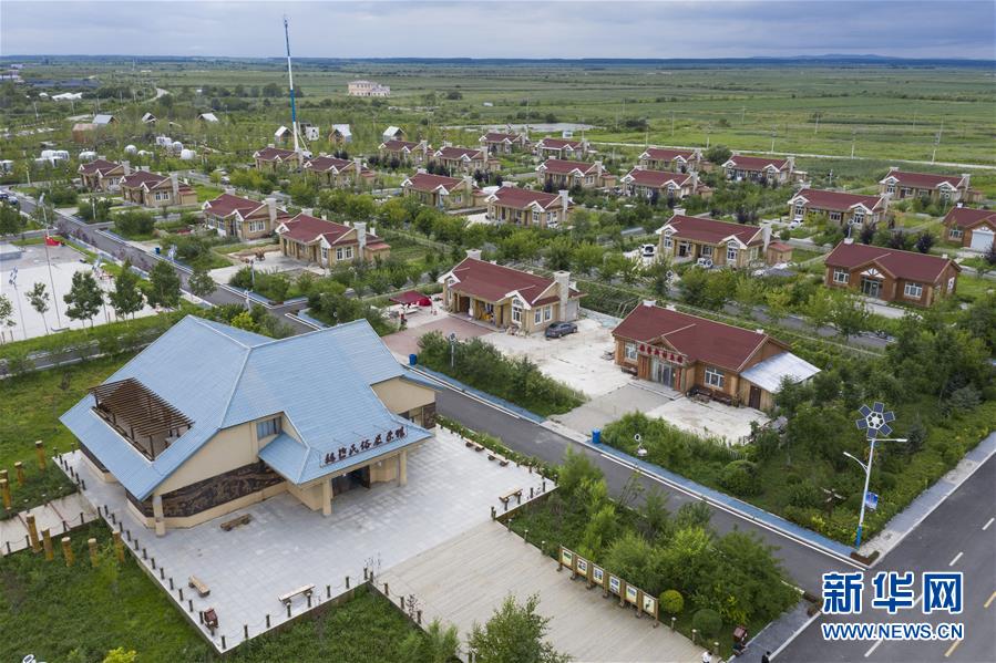 這是8月9日拍攝的抓吉赫哲族村(無人機照片)。抓吉赫哲族村面積1.3平方公里,是赫哲族“三鄉(xiāng)五村”聚居地之一。近年來,抓吉赫哲族村在撫遠市“烏蘇里船歌風(fēng)光帶”框架下,大力發(fā)展民俗文化旅游產(chǎn)業(yè)。新華社記者謝劍飛攝。