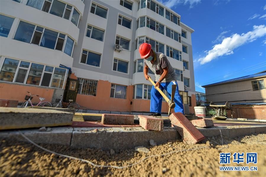 8月11日,工人在鎮(zhèn)賚縣慶生社區(qū)一老舊小區(qū)內(nèi)鋪設路面方磚。2019年底開始,吉林省白城市鎮(zhèn)賚縣對超過20年房齡的老舊小區(qū)進行全面改造升級,優(yōu)先完成樓體內(nèi)外墻面、樓頂防水、道路硬化工程,并協(xié)調各職能部門對地下管網(wǎng)、綠化美化等基礎設施問題進行統(tǒng)籌施工,減少后期二次施工造成的環(huán)境破壞和資源浪費。一期工程預計于今年10月完工,施工完成后,政府相關部門將為這些小區(qū)統(tǒng)一配備物業(yè)公司,解決后期設施維護問題。新華社記者張楠攝