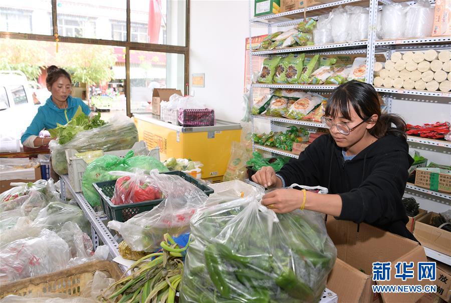 格桑旺姆(右)和姐姐德吉卓瑪在位于白朗縣的蔬菜店內(nèi)忙碌(8月3日攝)。新華社記者 李賀 攝